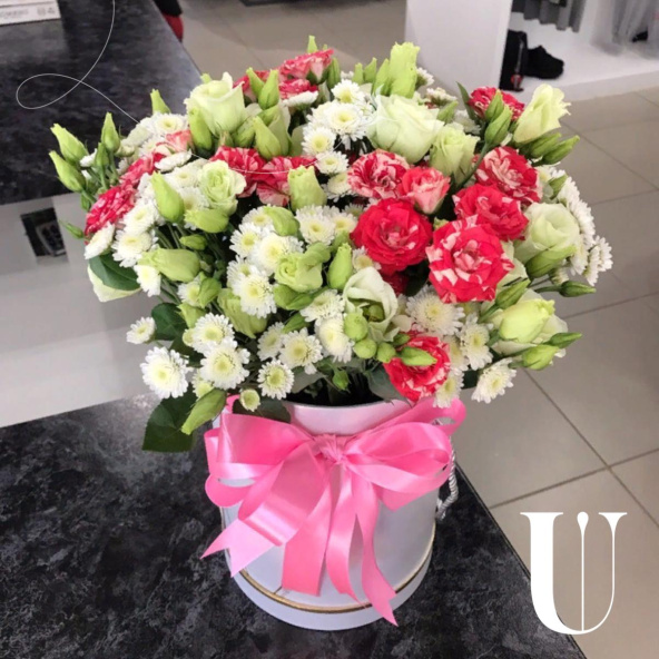 Роза кустовая 4 шт, хризантема кустовая 6 шт, эустома 4 шт,.