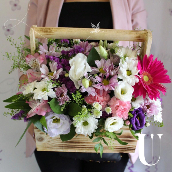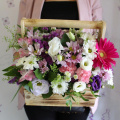 Гербера 1 шт, хризантема кустовая 3 шт, альстромерия 3 шт