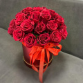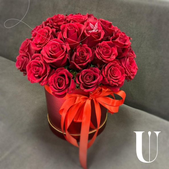 Оформление: шляпная коробка, оазис, лента атласная классическая, стильная композиция для самых любимых