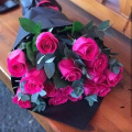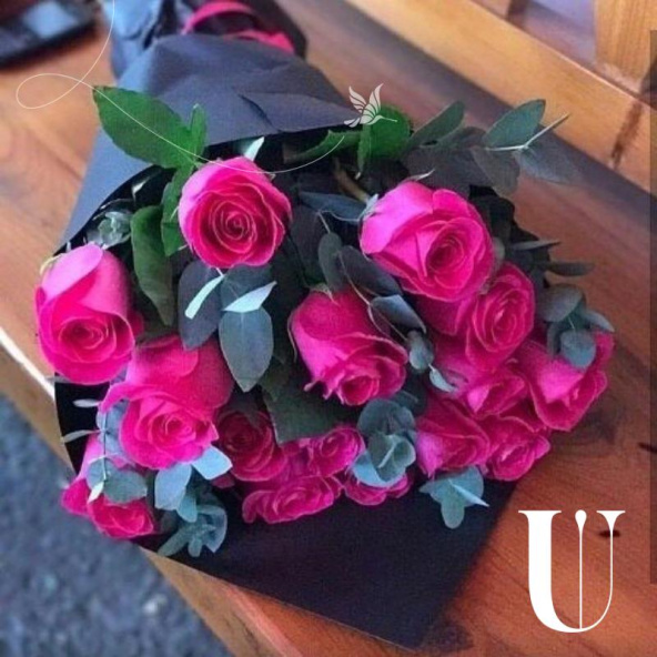 Роз 15 шт, эвкалипт 7 шт, пленка матовая черная
