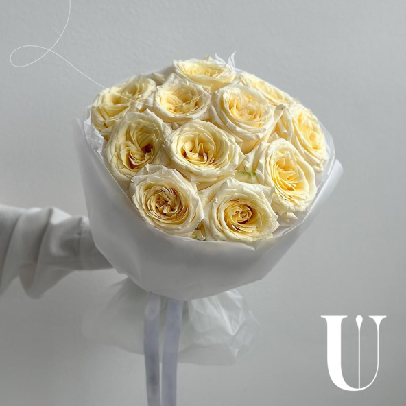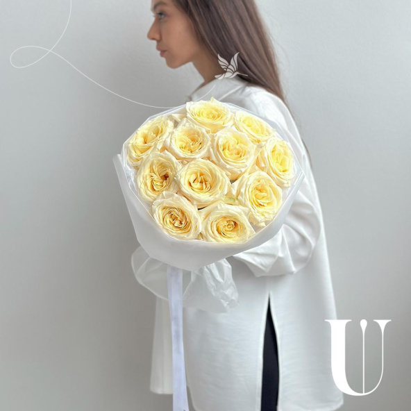 Роза Вайт Охара, Эквадор, бело-розовая, пионовидная 50 см. - 11 шт