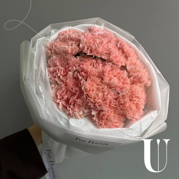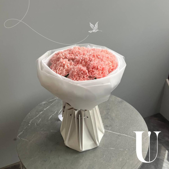 Букет 15 диантусов. Доставка в коробке-переноске и на аквабоксе