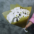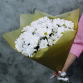 Букет из 5 белых кустовых ромашковых хризантем в матовой пленке с атласной лентой - это стильный и элегантный подарок для любого повода. Белые кустовые хризантемы, собранные в монобукет, украсят любой праздник или торжественное событие.